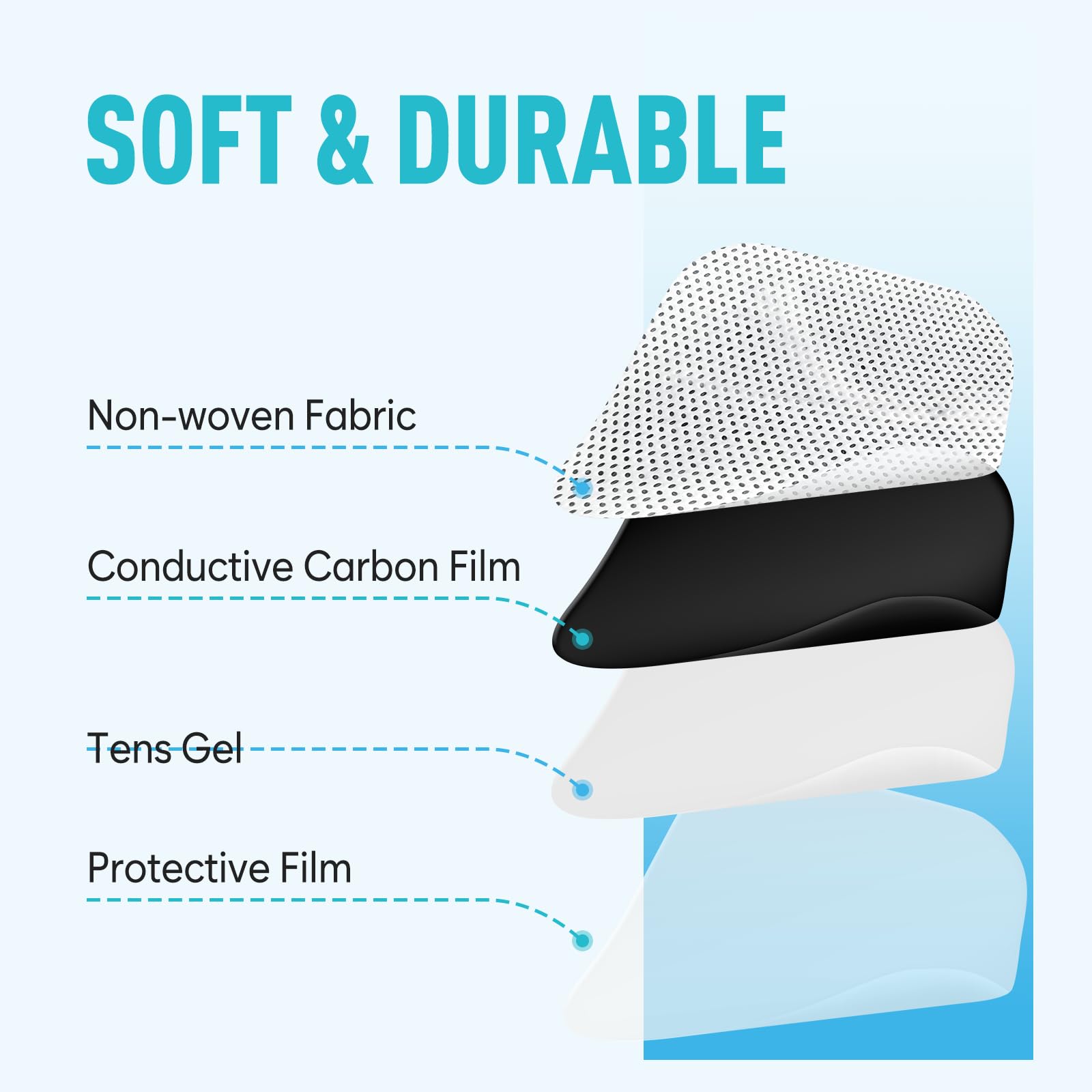 - ✔ 4 packs of 4 TENS & EMS Carbon Electrode Pads, total of 16. FDA cleared for OTC.