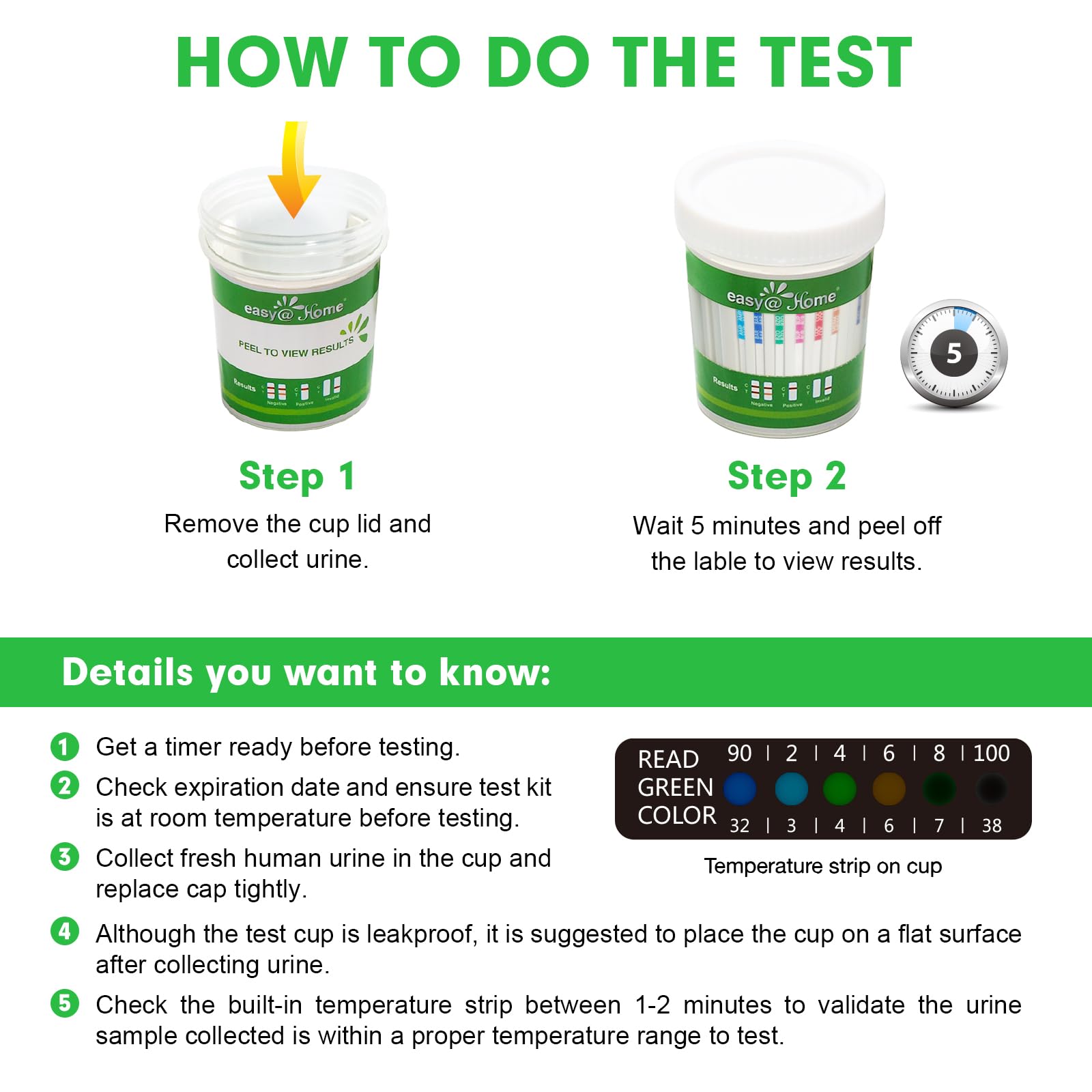 - Meet Industry-standard Cutoff Levels: Cleared by over-the-counter-use(home use). Easy@Home drug test cup is reliable, and ideal for self-screening tests.