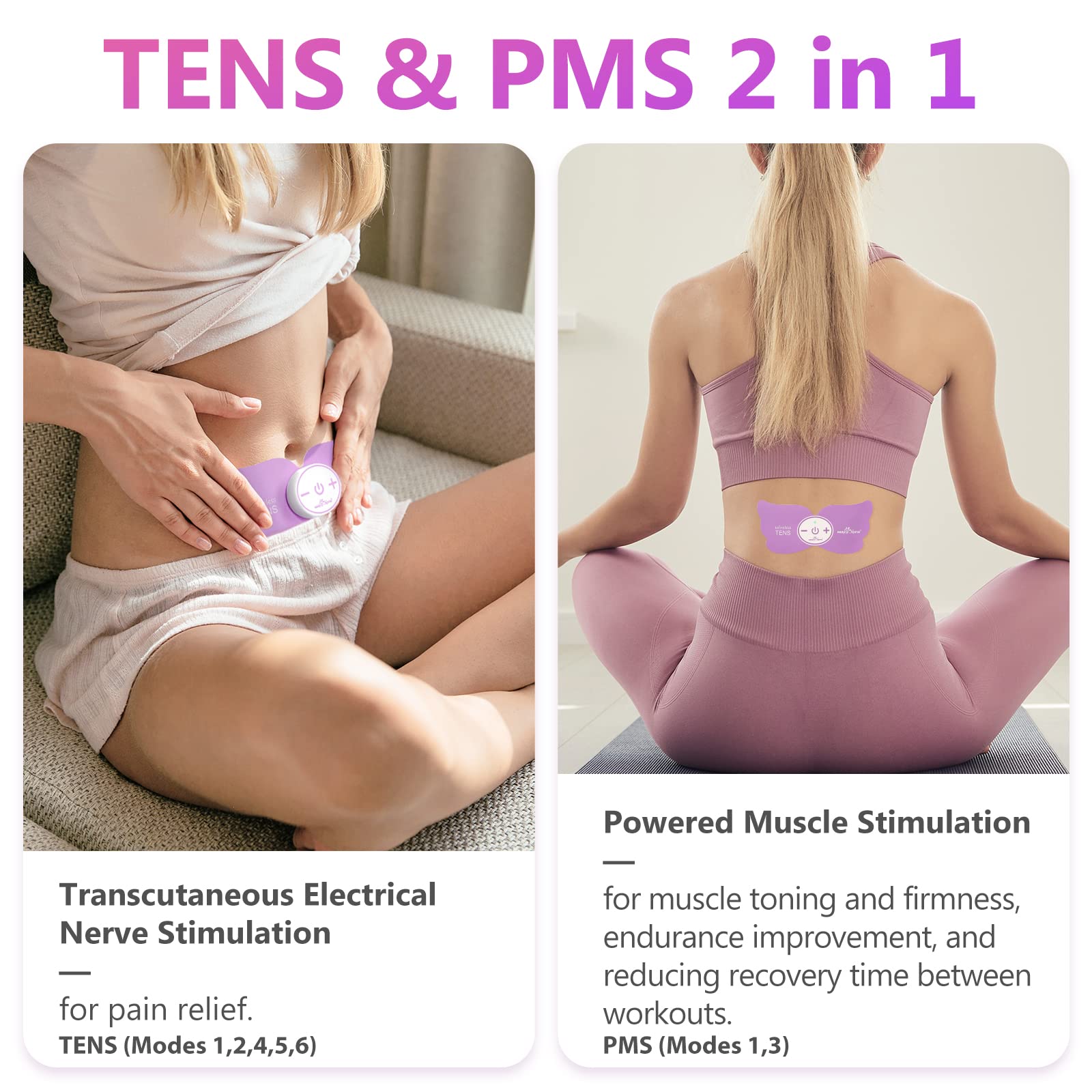 - Compact and Lightweight TENS and PMS Device: This USB rechargeable TENS device is engineered to temporarily alleviate pain in areas like the back, shoulders, feet, knees, abdomen, arms, and legs, while also enhancing local blood circulation. Featuring an intuitive three-button control, it allows easy adjustments across six automatic massage modes and 20 intensity levels, making it user-friendly and highly effective for pain management.